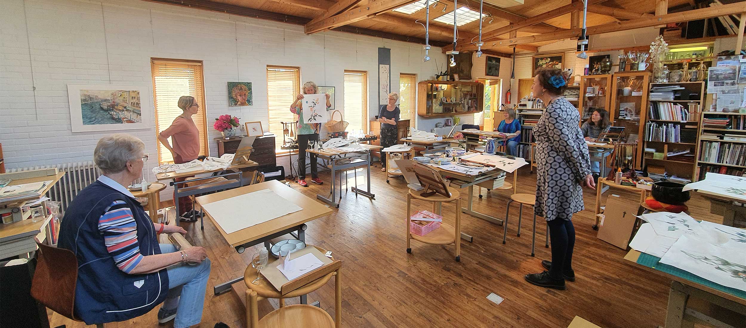 De lessen zijn zowel voor beginners als gevorderden, jong en oud. Bij de cursussen speelt plezier in tekenen en schilderen de hoofdrol.