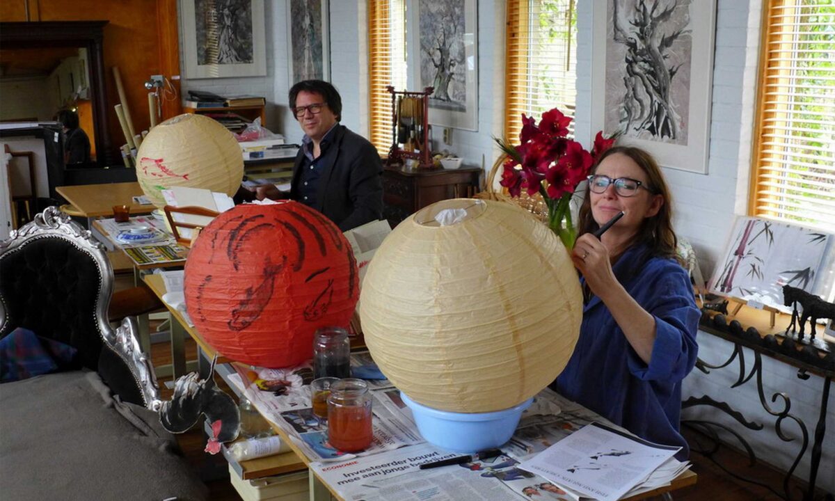 We starten met oefeningen, het ontdekken van vormen die voor jou of je ontvanger iets betekenen. Daarna het maken van ontwerpen op het prachtige transparante rijstpapier. Je kiest zelf of je met kleur wilt werken of Japanse inkt. De rijstpapieren lamp is rood of beige en ongeveer 30 cm. doorsnede. De gekozen ontwerpen worden allereerst gescheurd en dan met speciale lijm op de lamp aangebracht, op zodanige wijze dat het resultaat nog gewijzigd kan worden. Direkt op de lamp schilderen kan natuurlijk ook. Spannend.